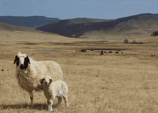 Эдгээр хонь цагаан өнгөтэй. Эх хонины нүүр хар өнгөтэй.